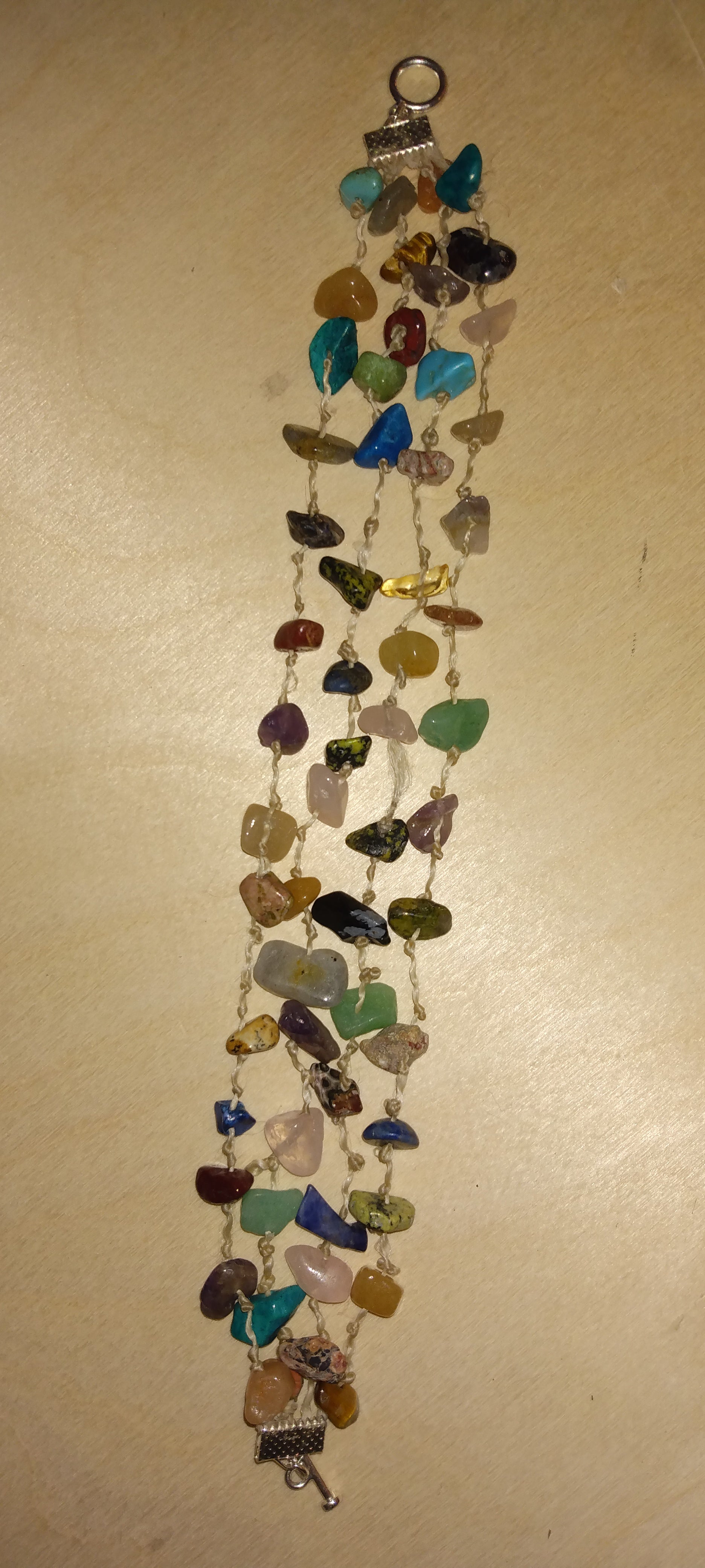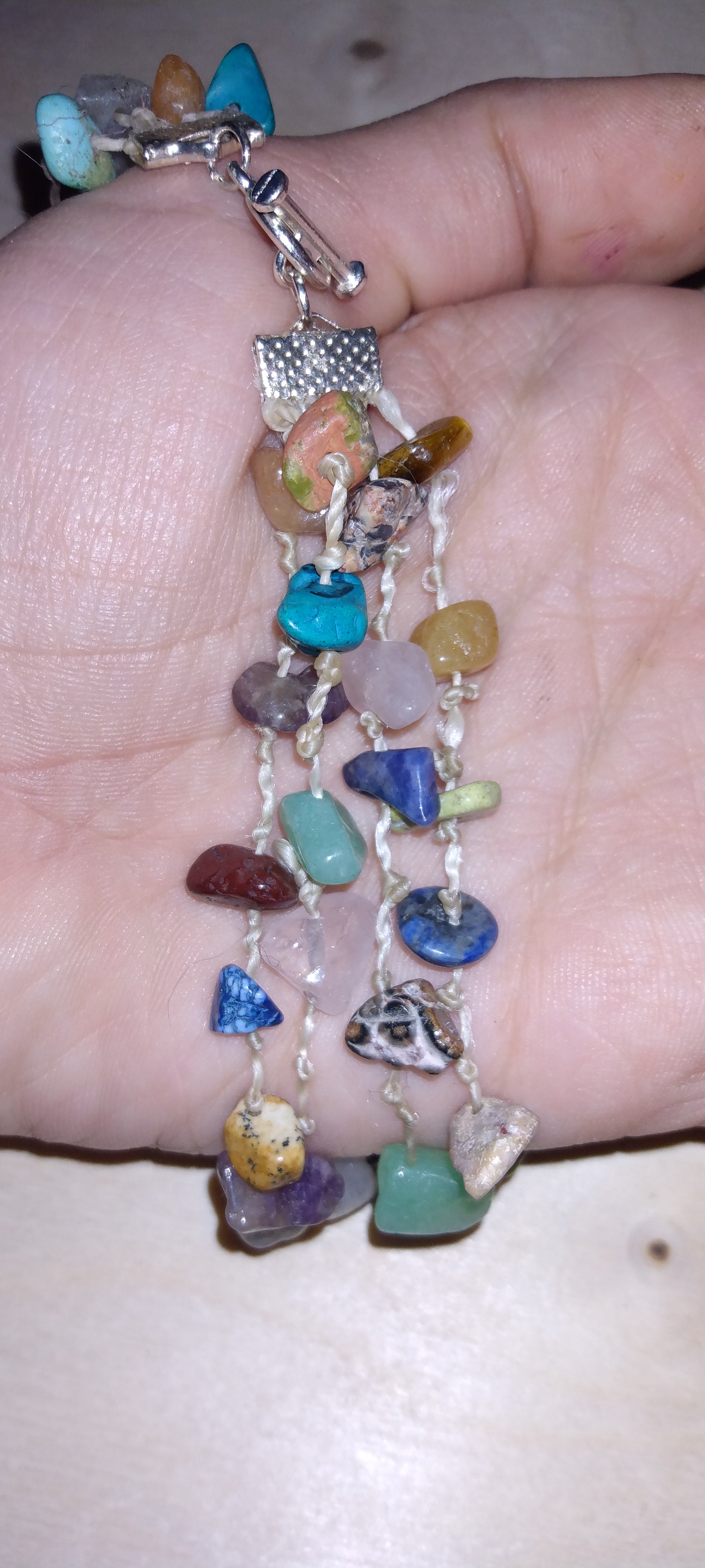 This handcrafted bracelet features multiple strands of real crystals, adding a touch of elegance to any outfit. Each crystal is carefully chosen and placed by hand, making each bracelet unique. Elevate your style with this one-of-a-kind accessory.